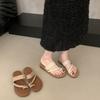 Sommer Leinen Hausschuhe Damen neue Zehenbedeckung lässige Sandalen Strandschuhe Badeurlaub weiche flache Römerschuhe