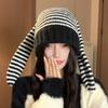 Damen farblich passende Hasenmütze mit großen Ohren, gestrickte Wollmütze, Herbst und Winter warmes Kopfbedeckung, vielseitige niedliche Maske