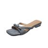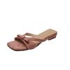 2025 new French bow square head low-heeled slippers women's summer pedal fashion versatile cool slippers