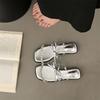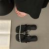 French rhinestone bow low heel cool slippers women's outerwear 2025 off the shelves new open-toe fashion solid color one-word