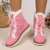 Pelzige Ballerinas Damen Schnee Stiefeletten Wildleder Schnürschuhe Freizeitschuhe Kurzer Plüsch Baumwollstiefel 2025 Trend Winter Warm Rutschfest Botas Mujer