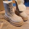Platform Snow Ankle Boots Women Fur Warm Suede Shoes Woman 2025 Trend Winter Short Plush Goth Walking Motorcycle Botas De Mujer