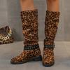 Wildleder Damen Leopard Kniehohe Stiefel Sexy High Heels Designer Chunky Schuhe Winter 2025 Trend Goth Party Pumps Chelsea Botas Mujer