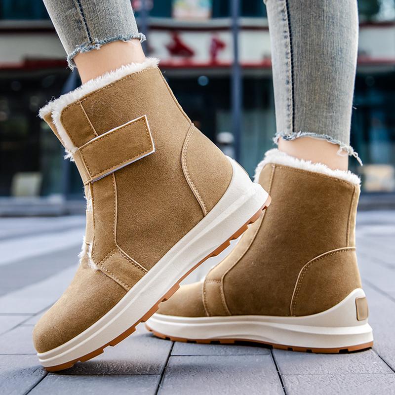 Damen Winter Übergröße Warmhalten Knöchelhohe Stiefel Frau Rutschfeste Plateau Baumwollgefütterte Schuhe aus Kunstwildleder Dick Plüsch Schneestiefel