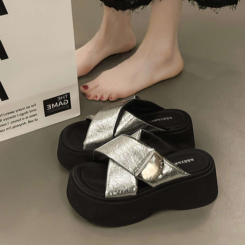 Increase height one-word vacation beach sandals women's outer wear 2025 summer new small muffin thick-bottomed cross slippers