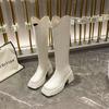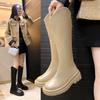 Thick-soled boots women's 2025 autumn and winter new British style but knee V-mouth knight boots heightened round head boots