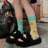Asymmetric Autumn Winter Women Socks Funny Cute Cartoon Cat Embroidery Animal Ab Interesting Mid Tube Socks