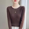 Rundhals Langärmliger Figurbetonter Gestrickter Pullover Basisschicht Vielseitiger Pullover für Frauen Im Herbst und Winter