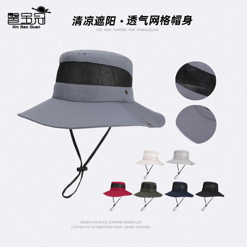 Summer mesh breathable bucket hat men's outdoor mountaineering fishing sun protection hat big brim foldable sun hat children