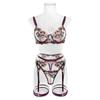 The set includes a matching bra panties and garter belt providing a coordinated and alluring look perfect for special occasions or romantic evenings.