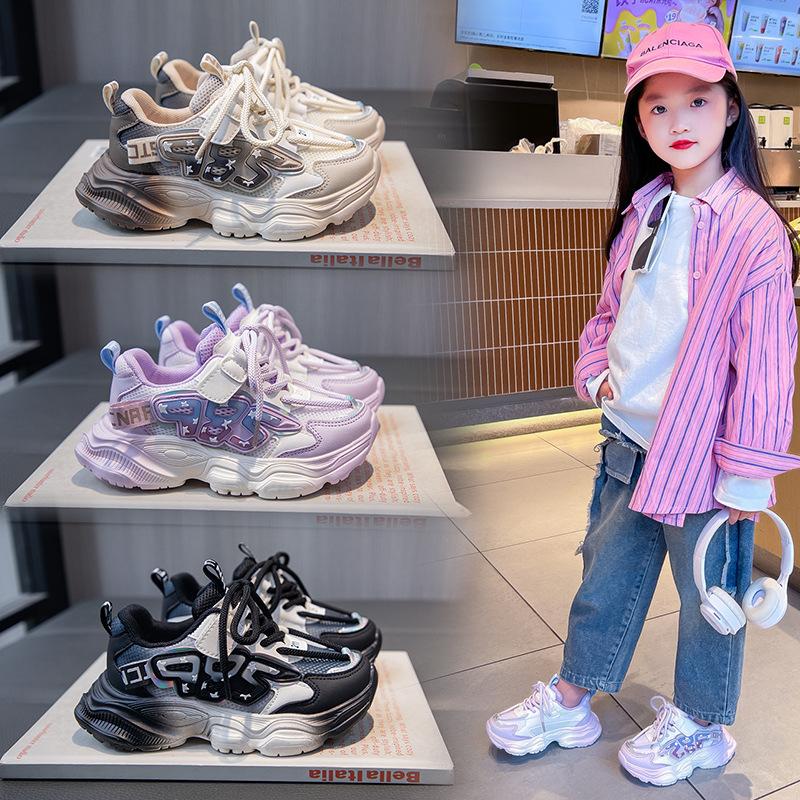Girls shoes sports shoes 2025 spring and autumn new gradual change of color casual shoes running shoes girls fashion soft-soled dad shoes