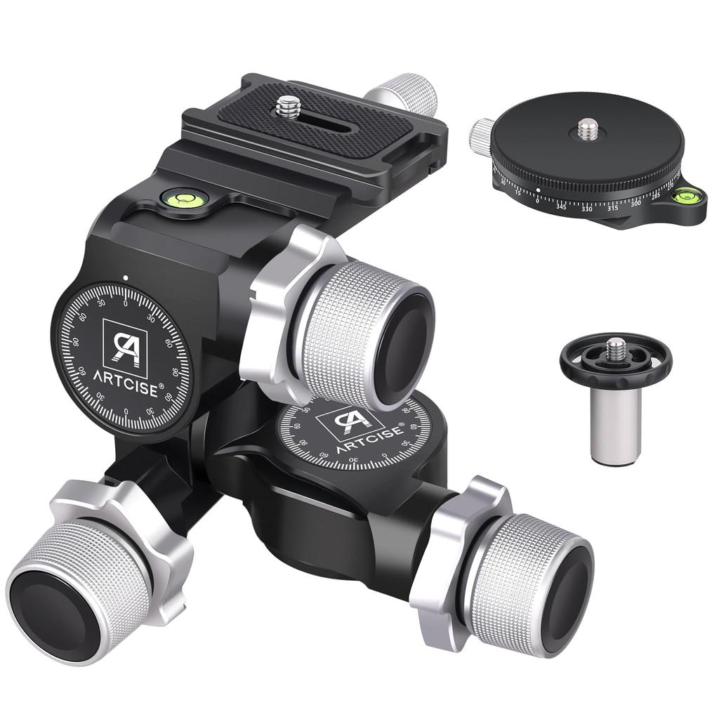 ARTCISE Geared Tripod Aluminum Fast Precision Quick Maximum Weight Capacity 6kg 3-Way Head, CNC-Made Alloy, Operation, Adjustment, 360° Panorama,