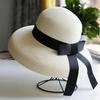 Vintage Hepburn Schwarzer Strohhut Sonnenhut Sonnenschutz Resort Strandhut Damen Sommer Große Krempe Sonnenhut