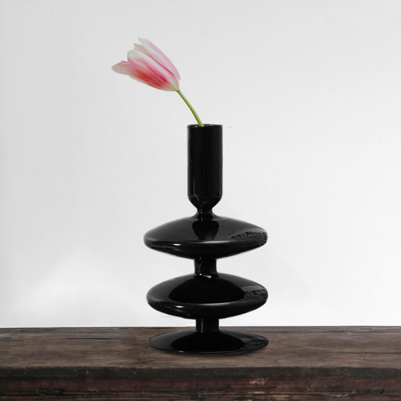 Black Glass Vases Candle Holders for Wedding Home Decoration Creative Modern Candlestick Holder Living Room Decor Home