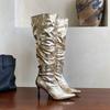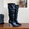 Mode Mode Plissierte Damen Kniehohe Stiefel mit Dünnen Absätzen Schuhe Spitzschuh Damen Moderne Stiefel Slipper Damenschuhe