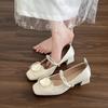 Mode 2024 Neue Chinesische Süße Blume Damen Schuhe Schlichter und Sanfter Stil Grober Absatz Kamelie Mary Jane Schuhe Französische Seide Hochzeitsschuhe