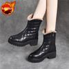 Mode Schwarz Leder Runde Zehe Winter Elegant mit Mittelhohen Absätzen Schneestiefel für Damen Wasserdichte Plateau-Stiefel Heiße Mode Damenschuhe