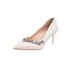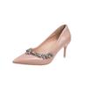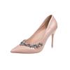 Fashion New Nude Colored Rhinestone High Heels for Women Slim Heels with Pointed Toes Light Mouthed Single Shoes Wedding Shoes