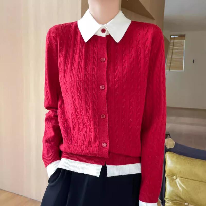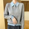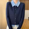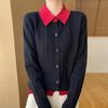 Autumn and winter new temperament gentle wind color matching lapel knitted sweater age-reducing thin bottoming shirt comfortable top women