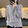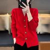 Women's clothing autumn and winter new solid color long-sleeved V-neck knitted cardigan love solid color sweater jacket women