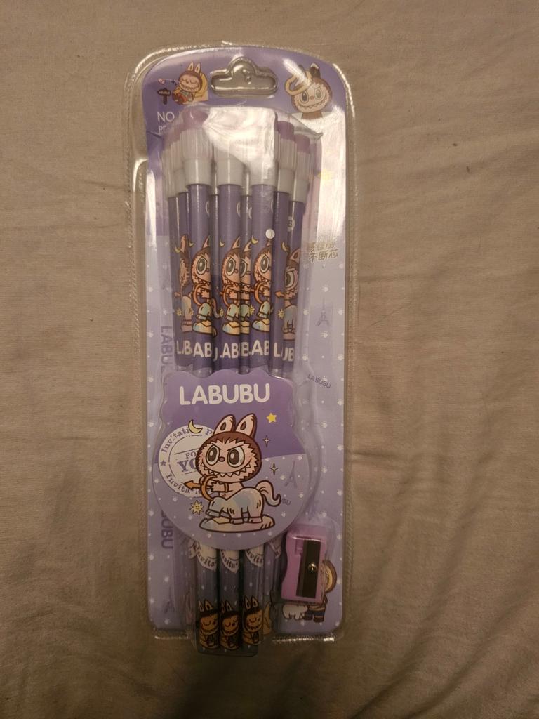 12 Stück Cartoon Labubu Bleistiftset mit Radiergummi Bleistiftspitzer Studenten Schreiben Zeichenstifte Studenten Schreibwaren Schulbedarf