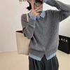 Kontrastfarbige Strickjacke für Damen, vielseitige Farbkombination, Fake-Zweiteiler mit Revers, einreihig, lässige Strickjacke für Damen