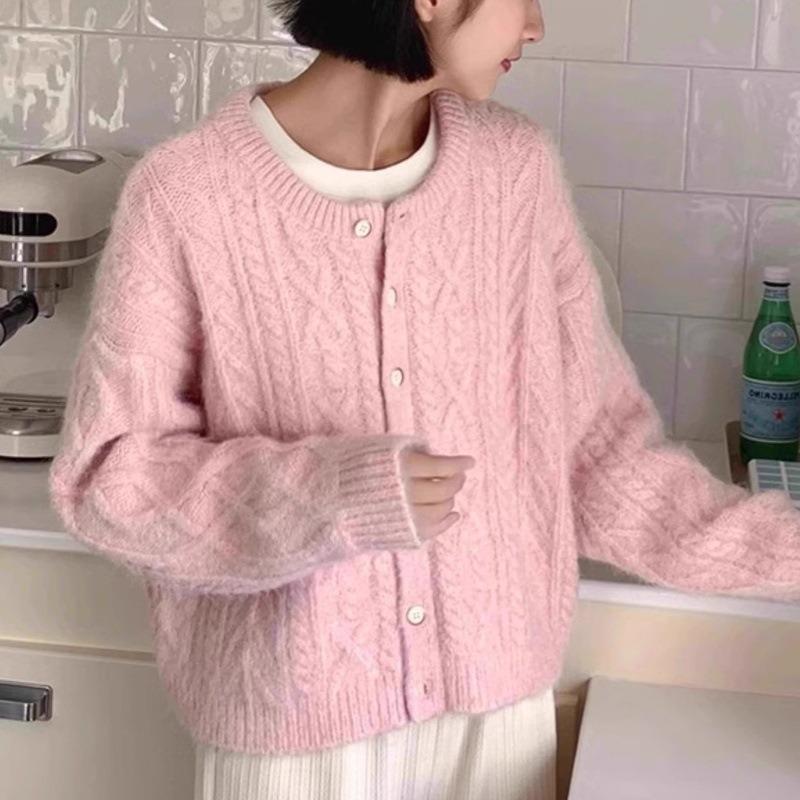 Gentle soft waxy versatile twist sweater cardigan women's autumn and winter new retro short knitted sweater jacket