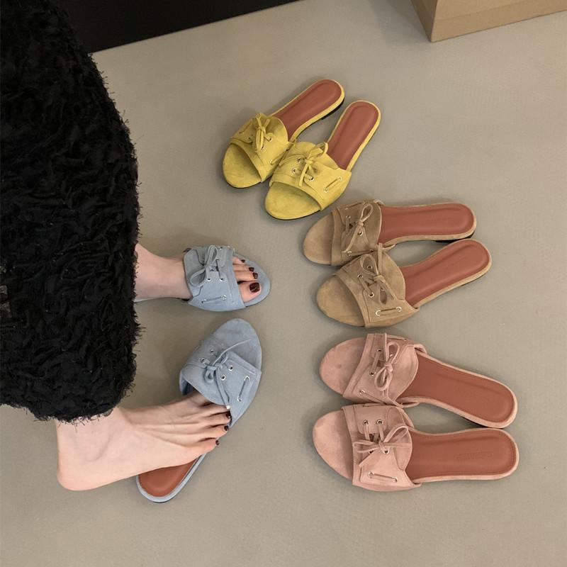 Mode Bailamos 2025 Sommer Neue Damen Hausschuhe Mode Flacher Absatz Damen Elegante Pantoletten Offene Zehen Outdoor Kleidsandale Schuhe