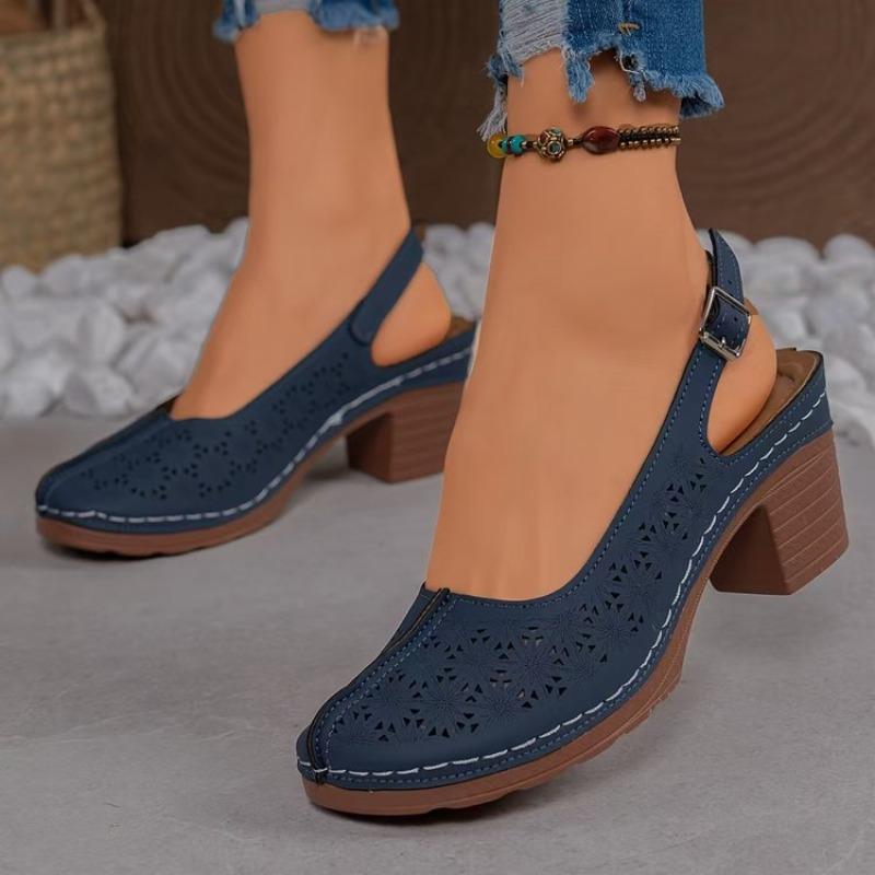 Mode Sommer Neu Damen High Heel Sandalen Bequeme Gummisohle Schuhe Große Größe 43 Römischer Stil Runde Zehe PU-Leder Slipper-Sandalen
