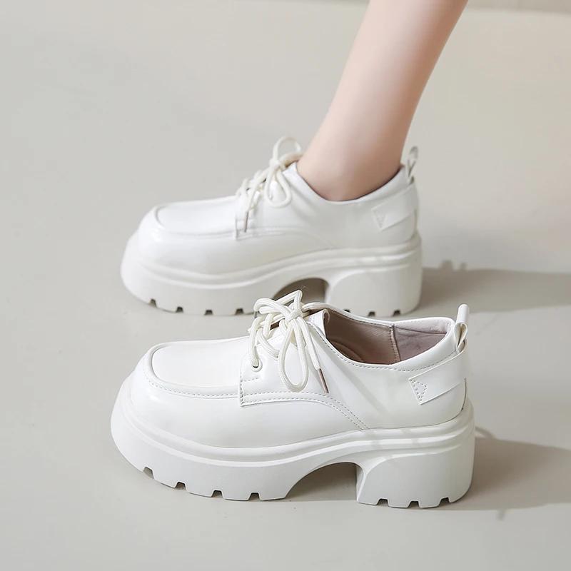 Mode Lackleder Plateau Slipper Damen 2024 Preppy Stil Schnürschuhe Oxford Schuhe Lässige Damen Schwarze Schuhe mit dicker Sohle Weiblich