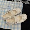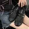 Mode Retro Rundkopf Flachschuhe mit flachem Ausschnitt Frau Weiche Sohle Ballett Mary Jane Schuhe Doppelschnalle Lässige Schleife Damen Slipper