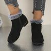 Mode Niedriger Absatz Baumwollstiefel Damenmode Runde Zehe Wildleder Seitlicher Reißverschluss Plus Fleece Schleife Rutschfest Abriebfest Kurzschaftstiefel