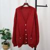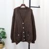 Medium and long V-neck knitted cardigan autumn and winter new loose lazy style temperament sweater jacket women