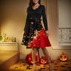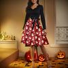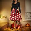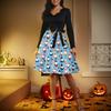 Damen Casual Mode V-Ausschnitt Langarm Retro Weihnachtsprint Retro Kleid