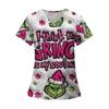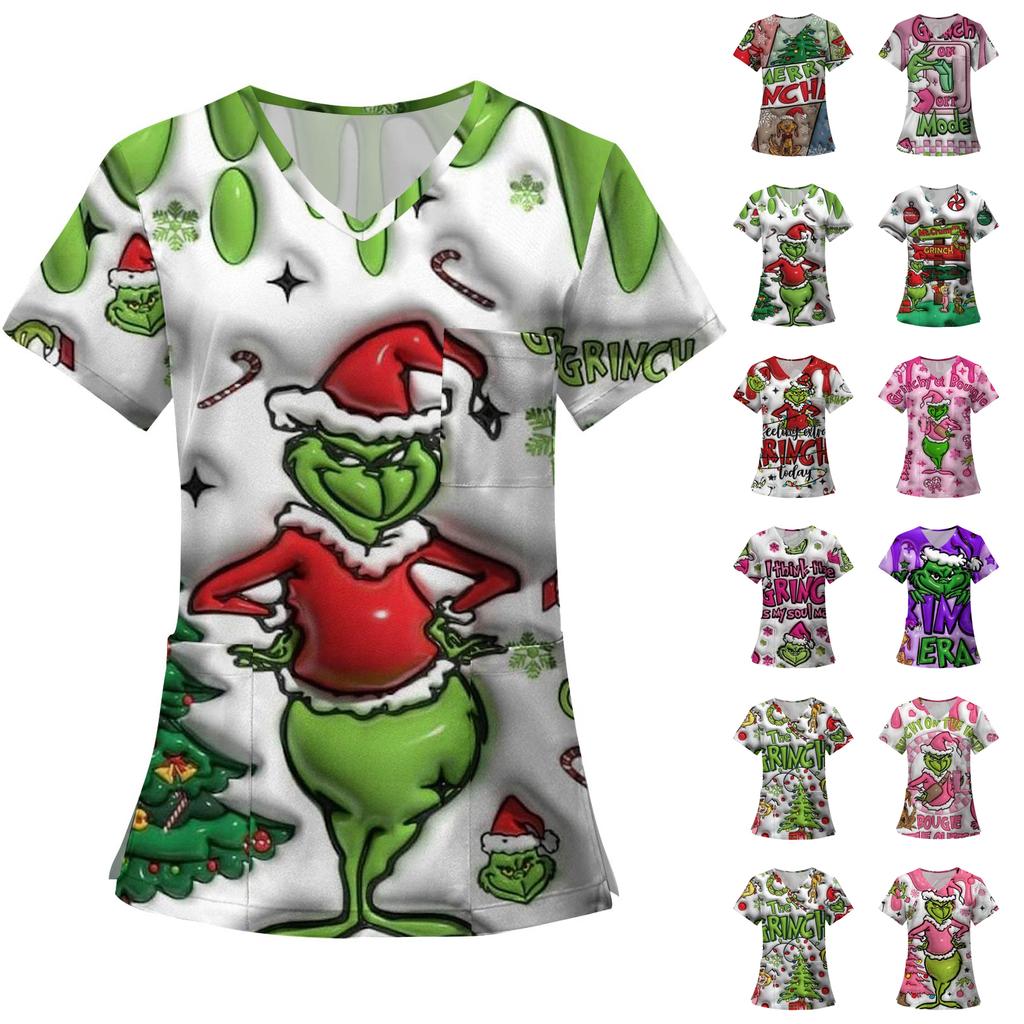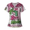 Damenmode Bedruckte Kurzarm-Oberteile mit V-Ausschnitt und Muster, Taschen, Arbeits-T-Shirts