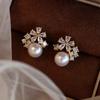 2025 Neue Exquisite Perlenähnliche Weiße Blume Ohrstecker für Frauen Glänzende Geometrische Zirkon Blütenblatt Ohrringe Mode Party Zirkon