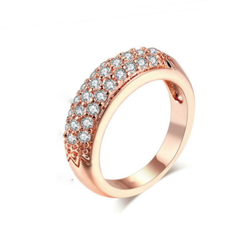 Verlobung Roségoldene Zinklegierung Farbe Kristall Mode Weißer Zirkonia Kristall Hochzeit Damenring Zirkon Accessoires für Frauen