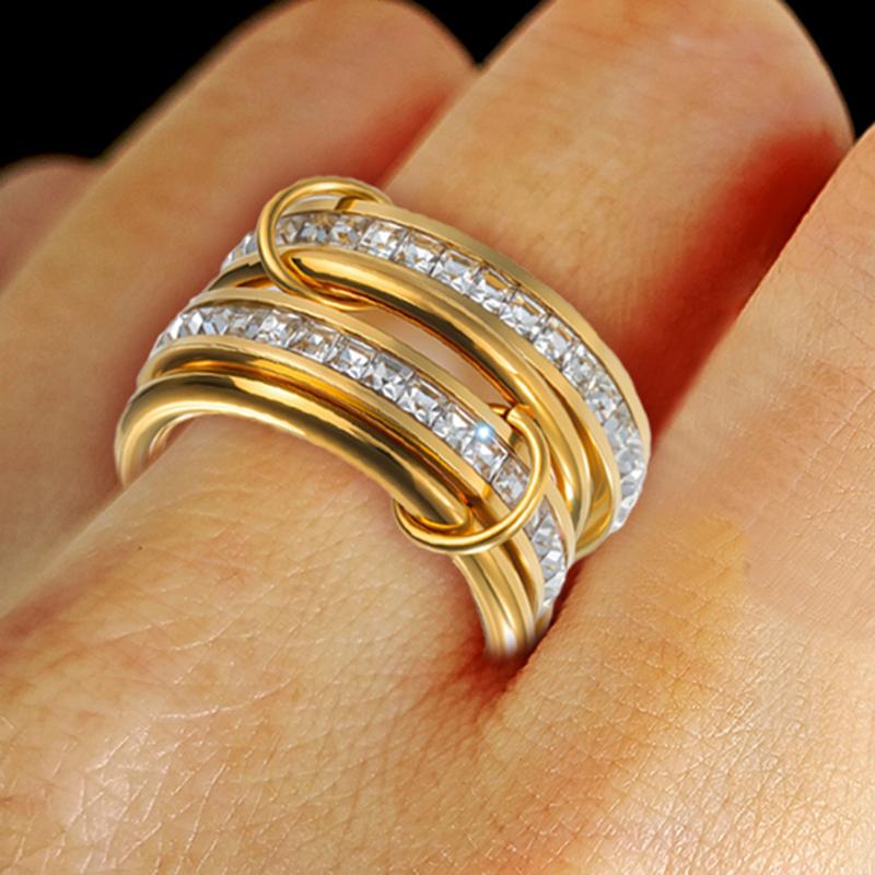 4 Stück Stapelbarer Spinelli Kilcollin Ring für Damen Luxus INS Mode Glänzender Zirkon Edelstahl Ring Stapelset Handgefertigter Zirkon