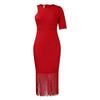 Large size women's clothing summer new solid color hip-wrapped fringed pencil skirt African dress