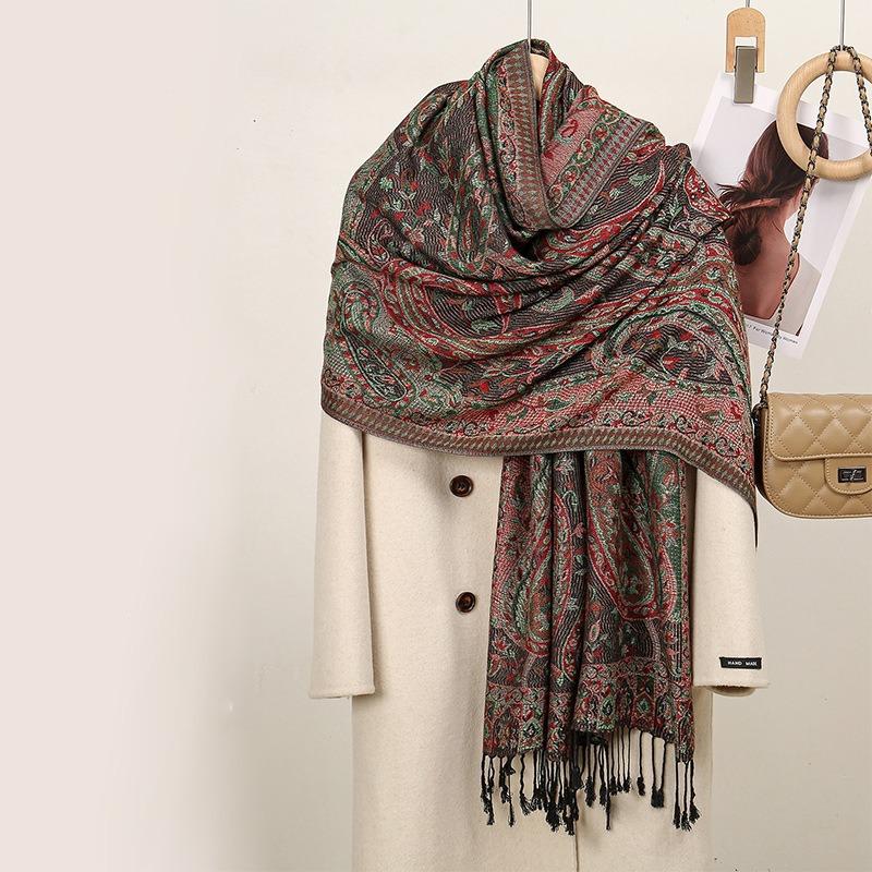 Hot-selling classic cashew embroidered fringed scarf women's hot-selling popular travel photo shawl long
