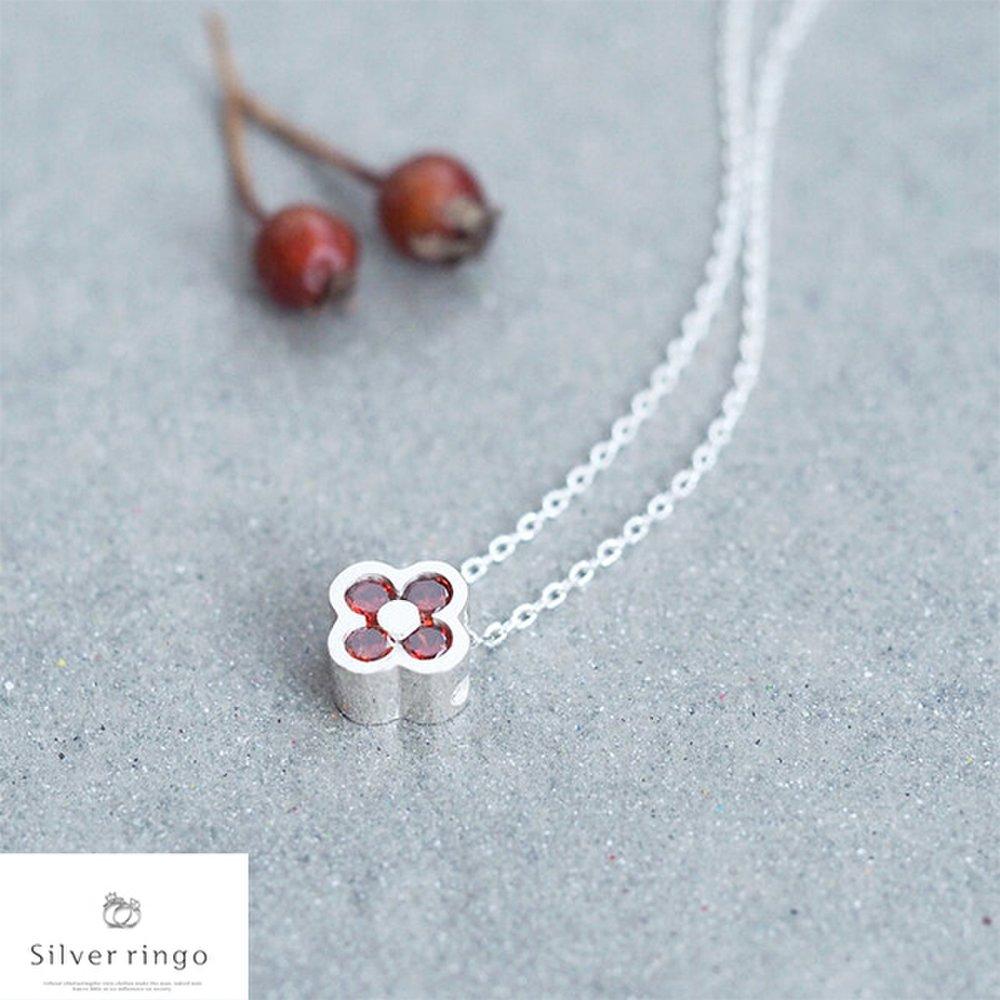 925 silver January birthstone clover-shaped necklace garnet clover n