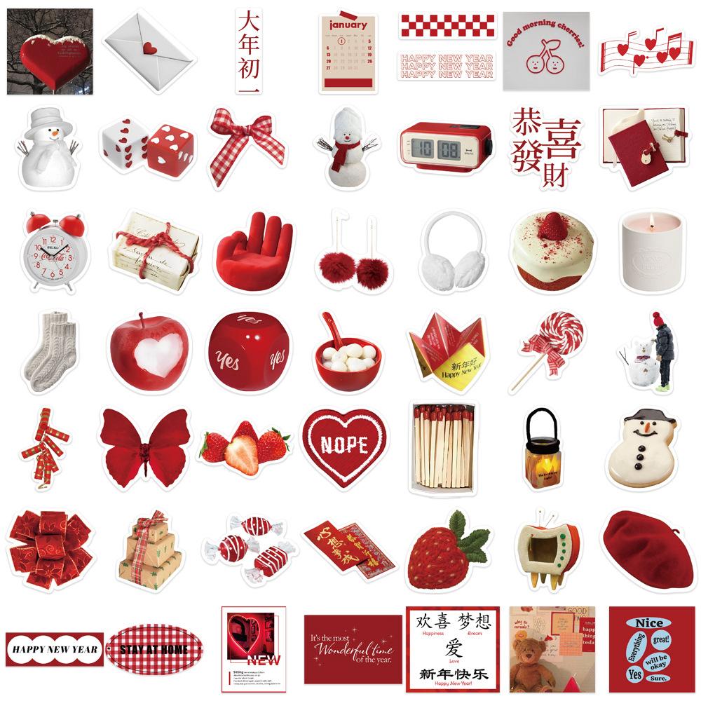 50 Red New Year Hand Account Graffiti Stickers Can Decorate Suitcase DIY Waterproof Stickers Spring Festival Hottest