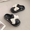 Popular cute sweet fairy wind bow muffin bottom girl 2025 summer wear non-slip bag head cool slippers tide