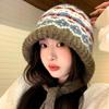 Gestrickte Wollmütze Damen Winter Warm Fischerhut Retro Ethnischer Wind Eimerhut