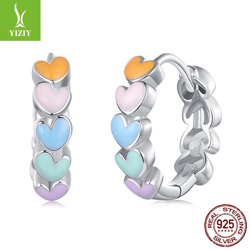Dopamine Love Ear Buckle Girl, Cute Rainbow Love Design S925 Sterling Silver Earrings Earrings