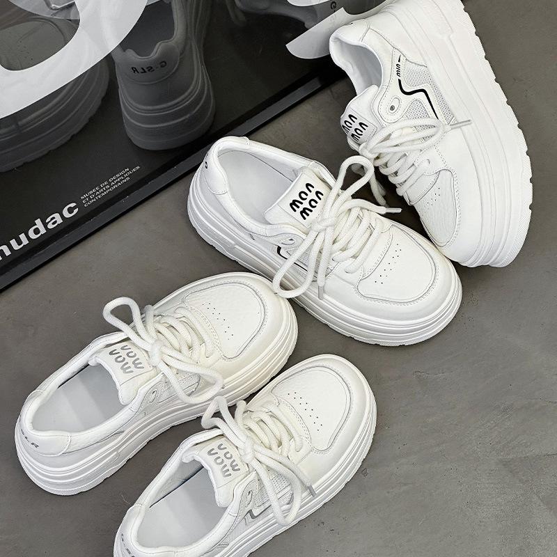 Muffin-Plateau weiße Schuhe Damen 2025 Sommer dünnes Mesh atmungsaktiv Leder Spleißen bequem und leicht lässige Board-Schuhe