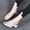 Damen-Hausschuhe mit hohen Absätzen, Schuhe für den Sommer 2025, europäischer und amerikanischer Stil, Fischmaulsandalen aus erstschichtigem Rindsleder mit dickem Absatz, Damenmode