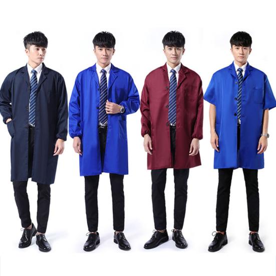 Staubdichte Herren-Laborkittel mit langen/kurzen Ärmeln, Knöpfen und Taschen, Arbeitskleidung für Herren