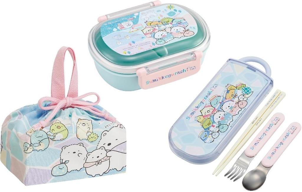 Skater Children's Lunch Box Trio Set: Chopsticks, Spoon, and Fork. Kids' Cutlery, Antibacterial, Easy-Open Slide-Open Design. Made in Japan. Sumikko Gurashi Shirokuma Furusato (Snow Bear Hometown) Design. Suitable for Girls. TACC2AG