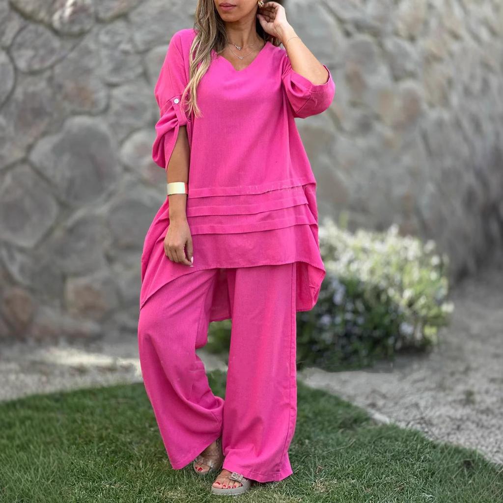 Spring New Women's Two-piece Shirt Set Plus-size Shirt Set High-waisted Loose Trousers
